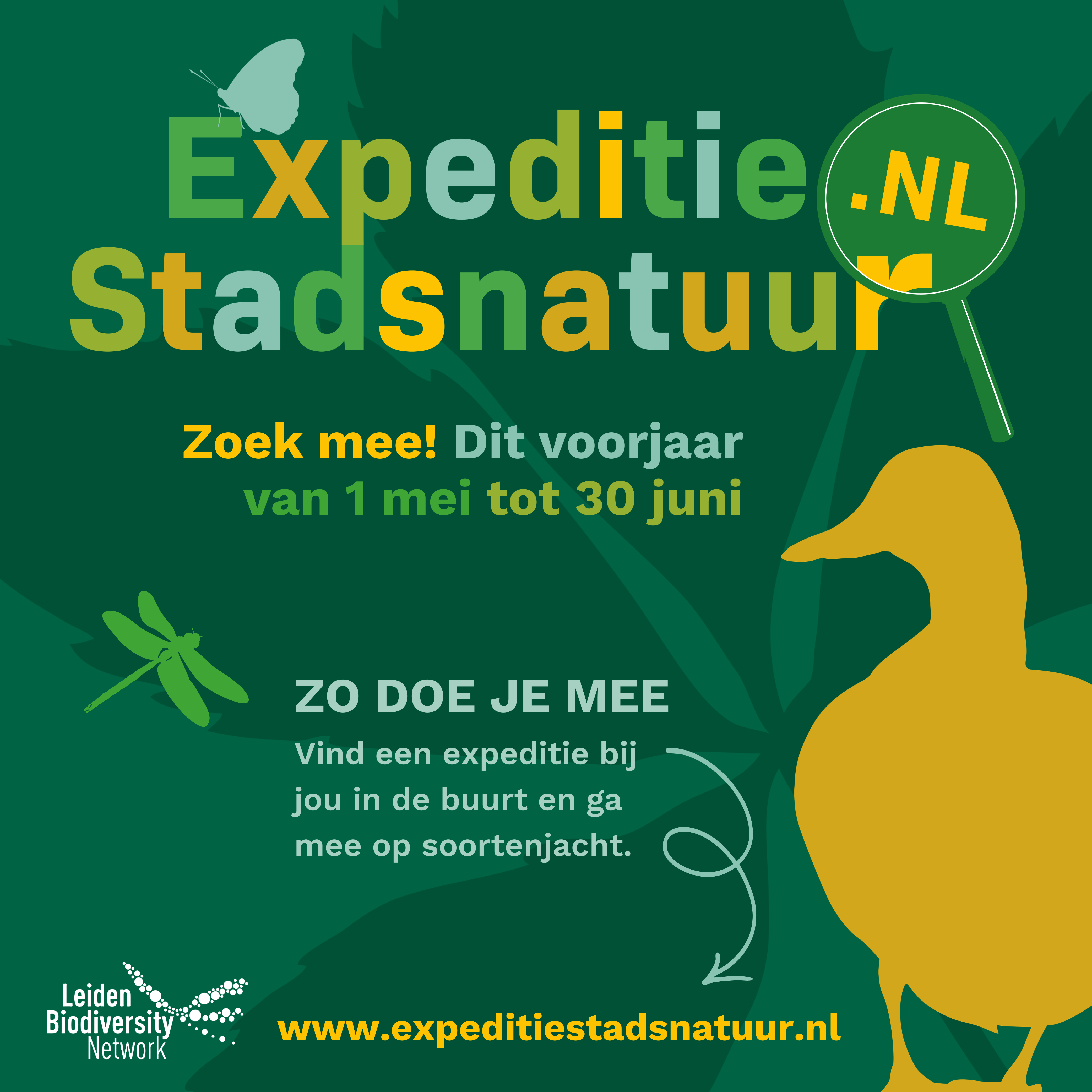 Expeditie Stadsnatuur is een initiatief van het Leiden Biodiversity Network, een samenwerking van de Universiteit Leiden, het Citizen Science Lab, Naturalis, Hogeschool Leiden, Hortus botanicus en Leiden Kennisstad.